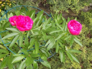 We all try to help peonies along, surrounding them with rings and stakes for added support. But all it takes is one good rain, and the flowers are drowned, their petals littering the mulch like wet tissue paper — not unlike the sad holiday decorations that stay on peoples’ homes well into August. (Or maybe they’re just getting head start on next holdiay season.)