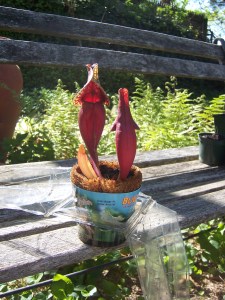 The other day, my friend Rachel presented me with a gift: a carnivorous plant. In my mind, carnivorous plants could only be found in two places: a primordial soupy rain forest swamp or a sci-fi film (think Little Shop of Horrors or The Day of the Triffids). In all honesty, it’s kind of cool to have a carnivorous plant in the yard. It’s also a little intimidating. Does this mean I have to barbecue steaks for me, Joe, and the plant?