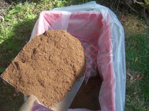 Step 3: I tend to really pack the bags.  I’m not sure if this is correct, but it’s likely that I do this for the sake of space, since I have so many corms to pack away.  Once the bag is full, I then add more peat moss to the bag, shaking the bag so that the peat moss settles and covers the corms.