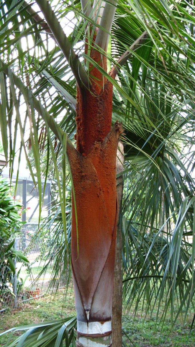 The rusty -- and furry -- sheath of the Teddy Bear Palm (Dypsis lastellianna).