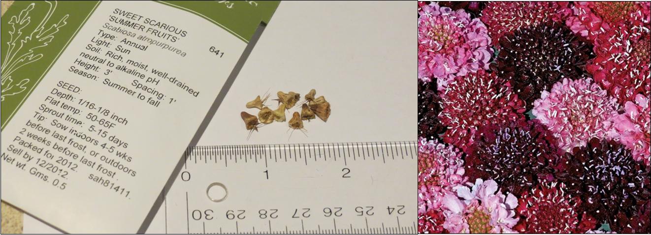 Some flowers simply make me smile. That was my reaction when I spotted the pom-poms of Sweet Scabious in the Select Seeds catalog. Here is “Summer Fruit.”
