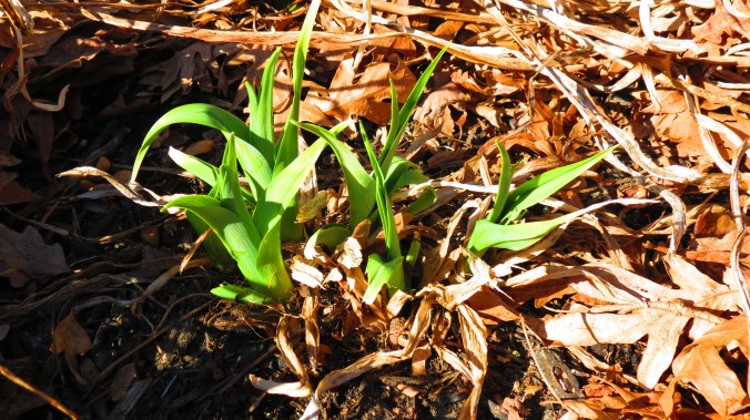 With all of this ultra-mild weather, it seems that spring is happening fast and furious. Every stroll around the yard reveals some new sprout. Happy spring.