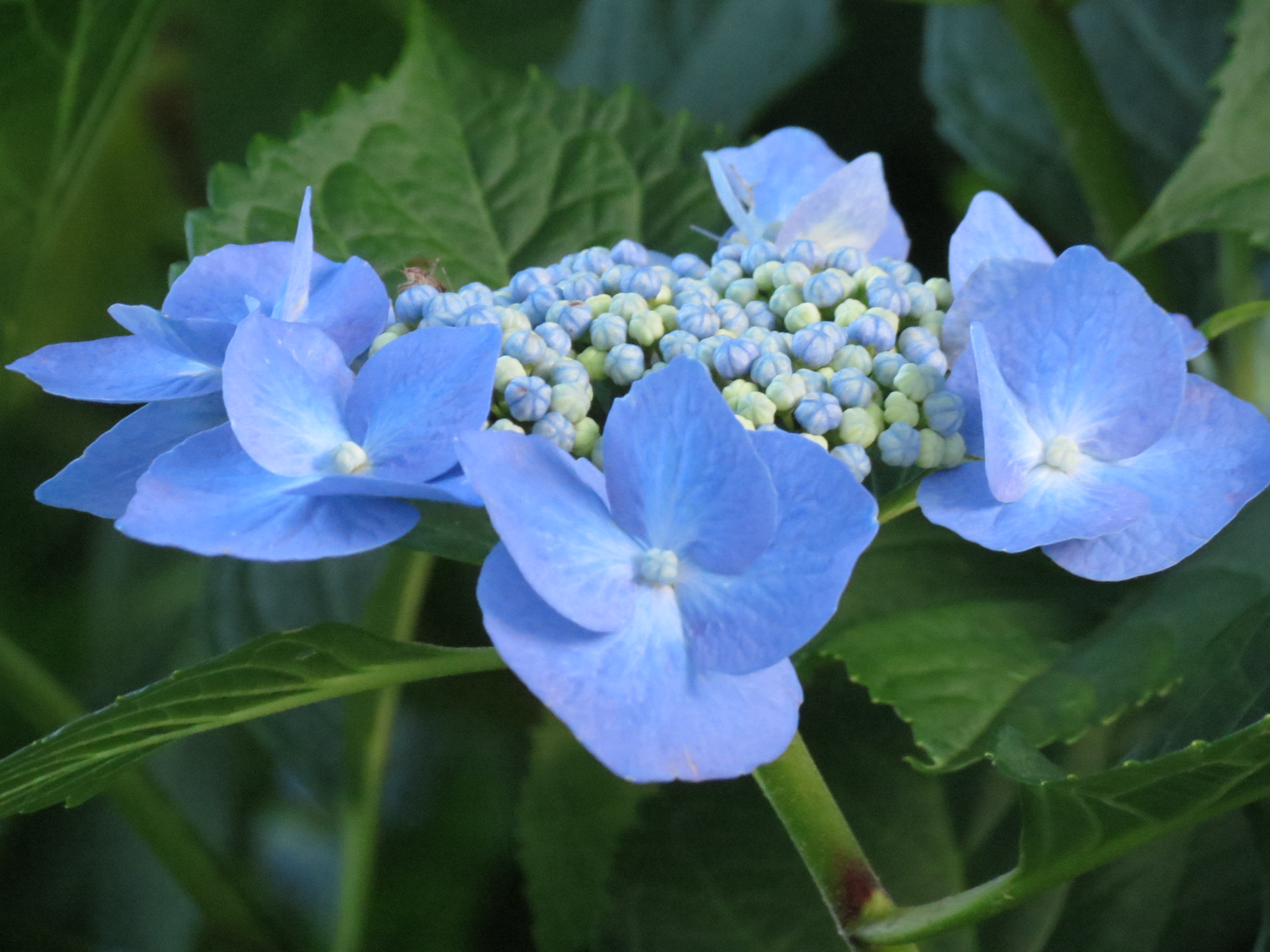 It wouldn’t be a “Bloomin’ Update” if I didn’t share some photos of my best garden friends, hydrangeas, as they put on their show. In fact, some of them — particularly the blue ones — are just getting started after sunset, when they seem to glow after absorbing light from the sun.