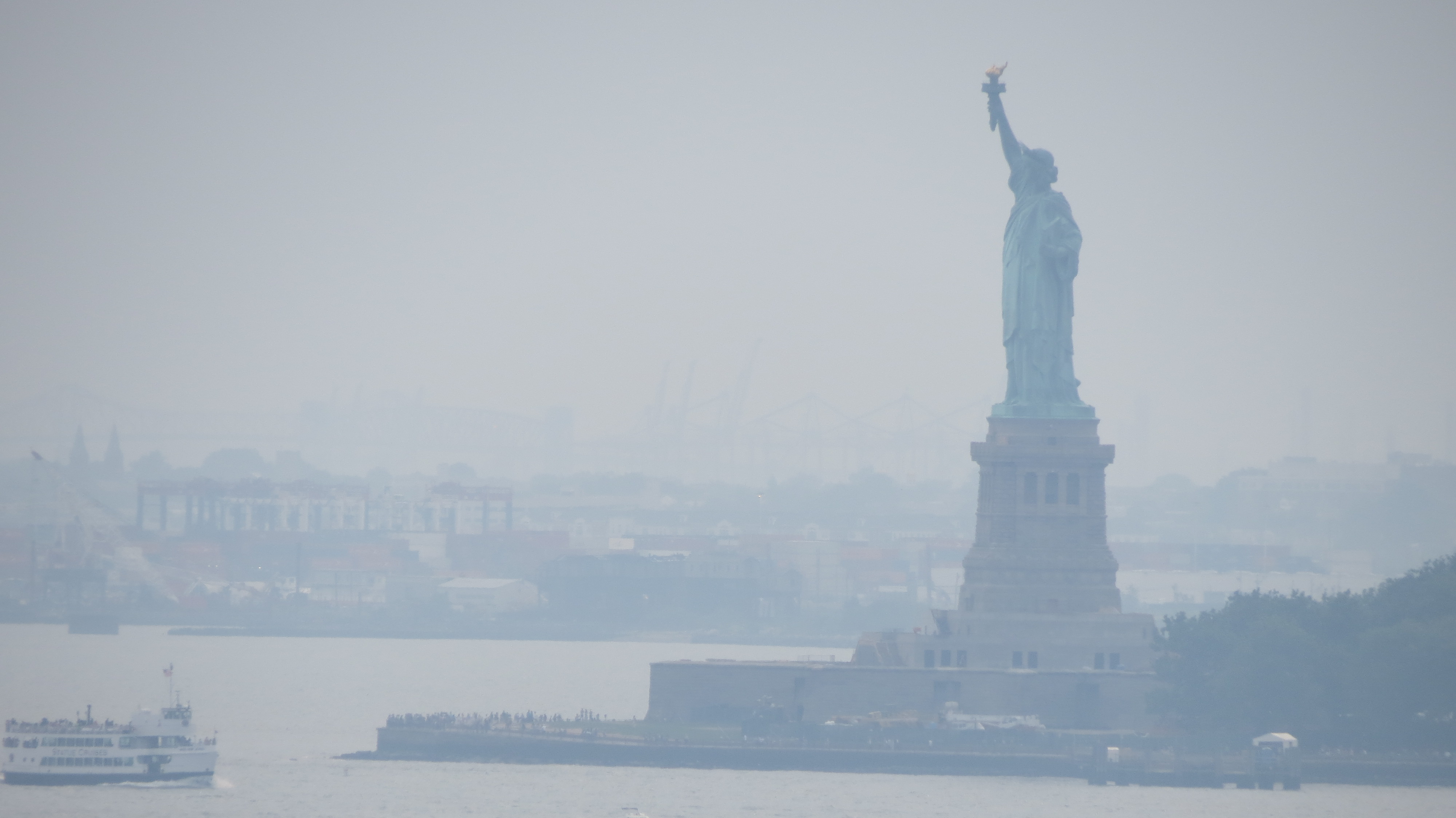 As you face Manhattan and look right, you can get a view of the Empire State Building.