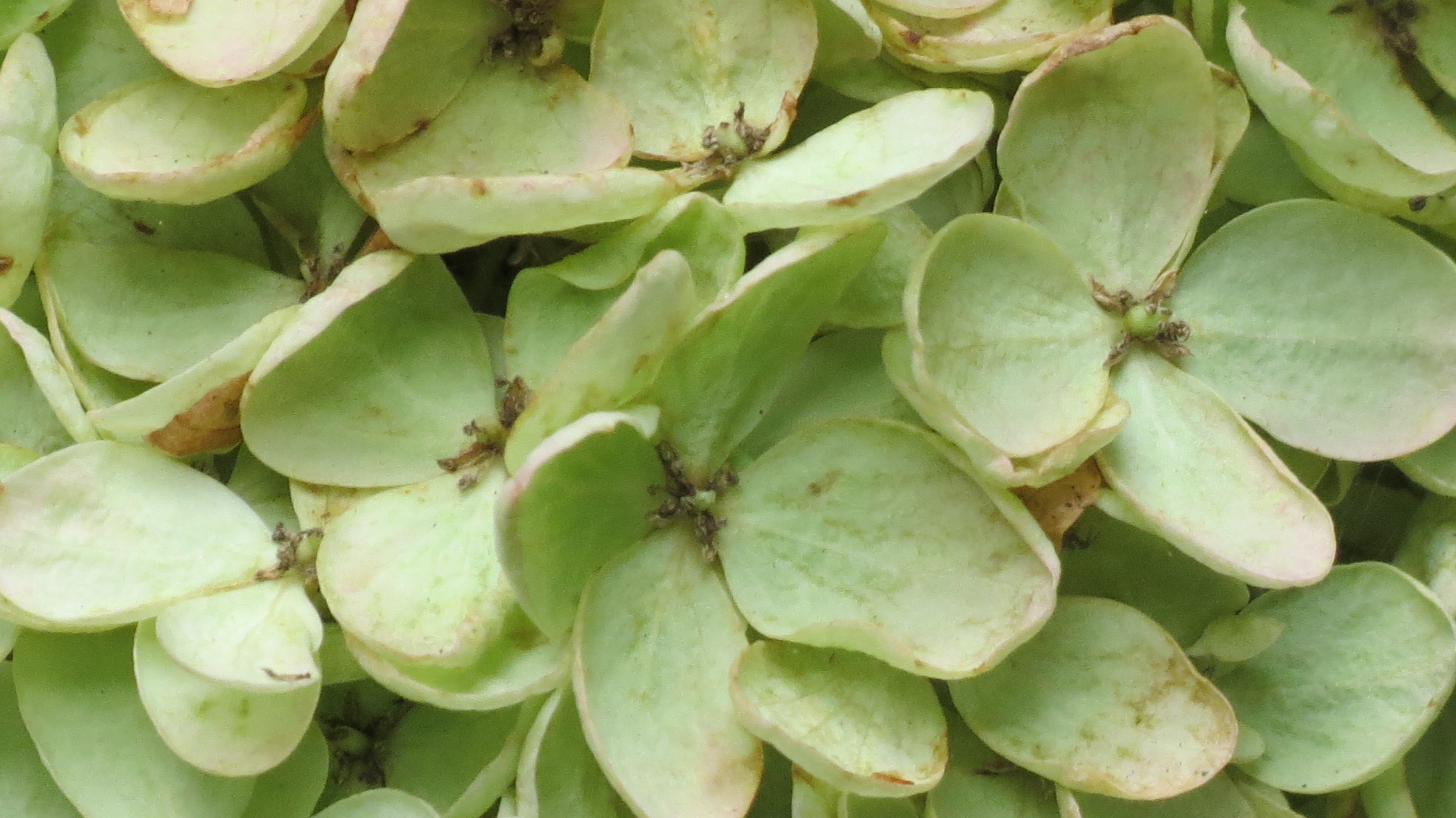 Pee Gee Hydrangea blooms are fading to a pale green.