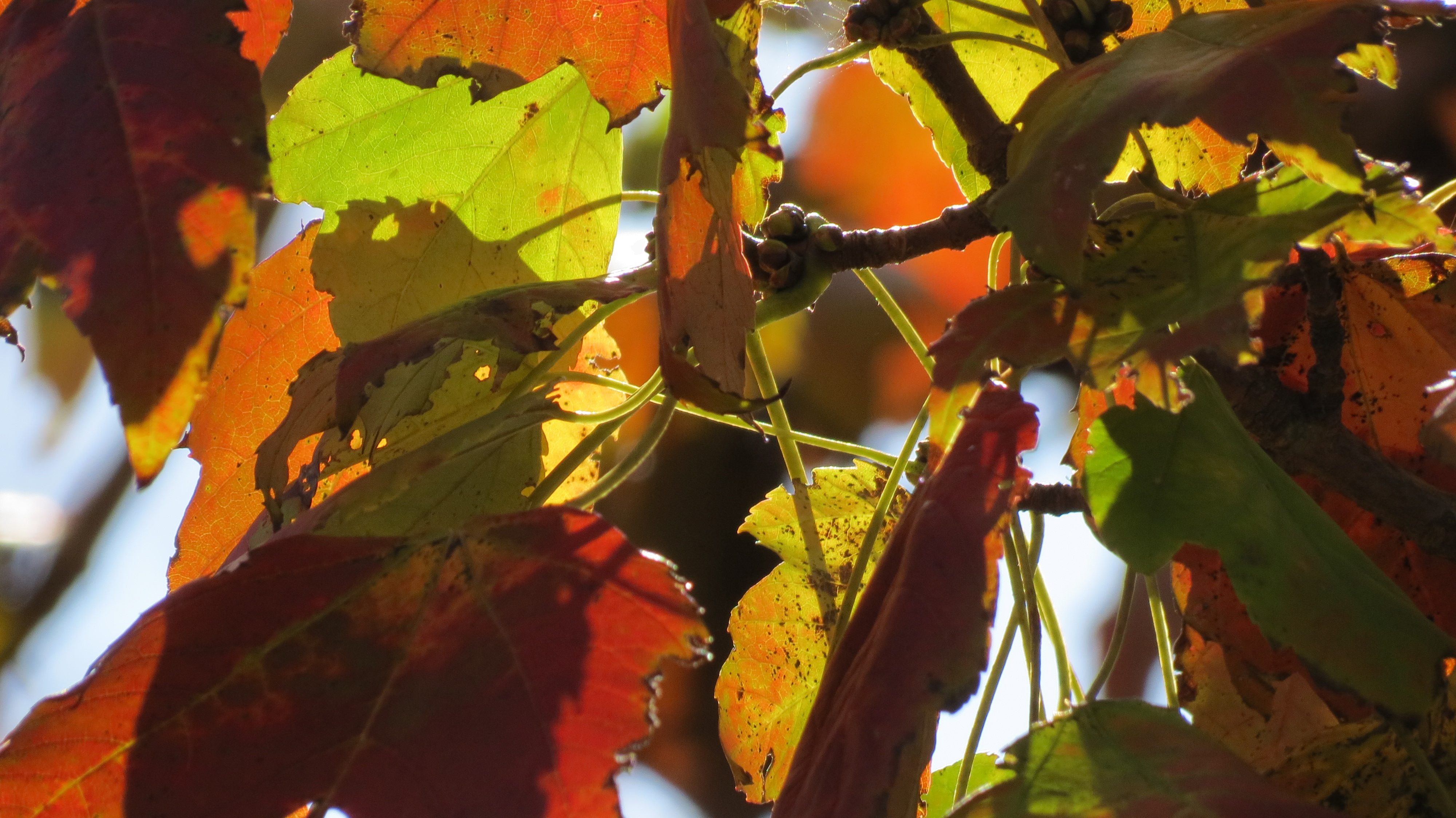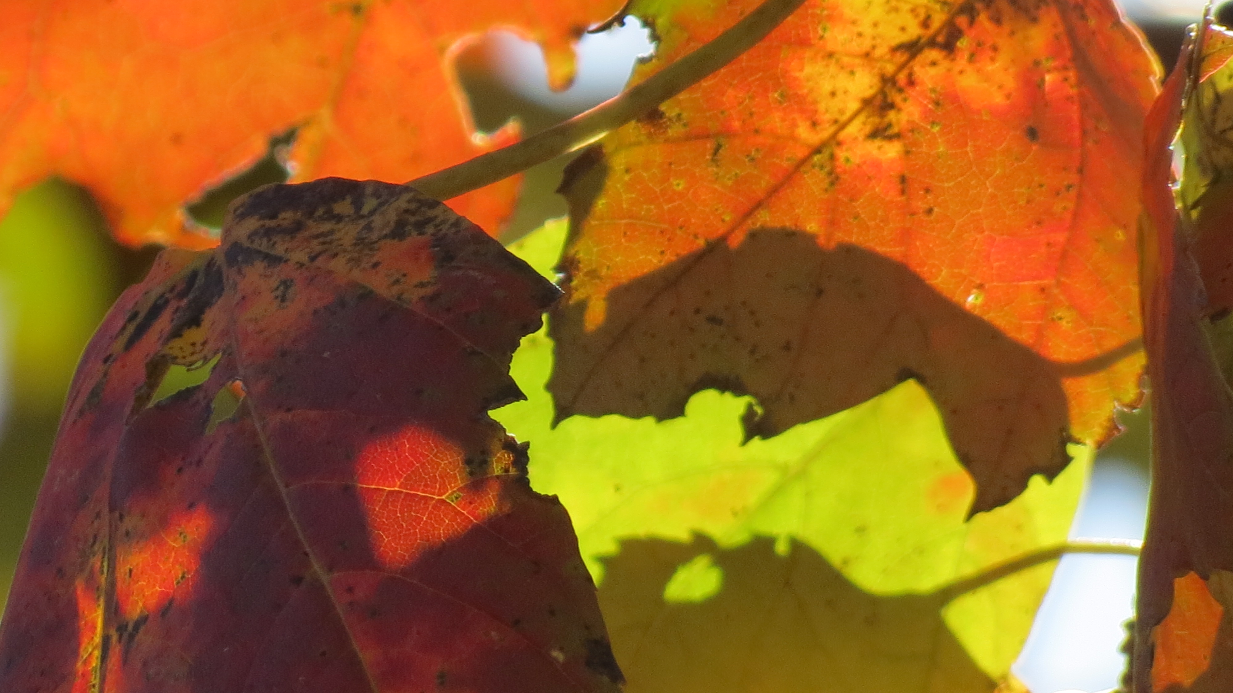 Today, though, I glanced up and literally saw the colored leaves in a whole new light.  The leaves that would soon fall to the ground were glowing, on fire, backlit by the October sun – and the colors rivaled that of any stained glass in any cathedral.  I breathed.