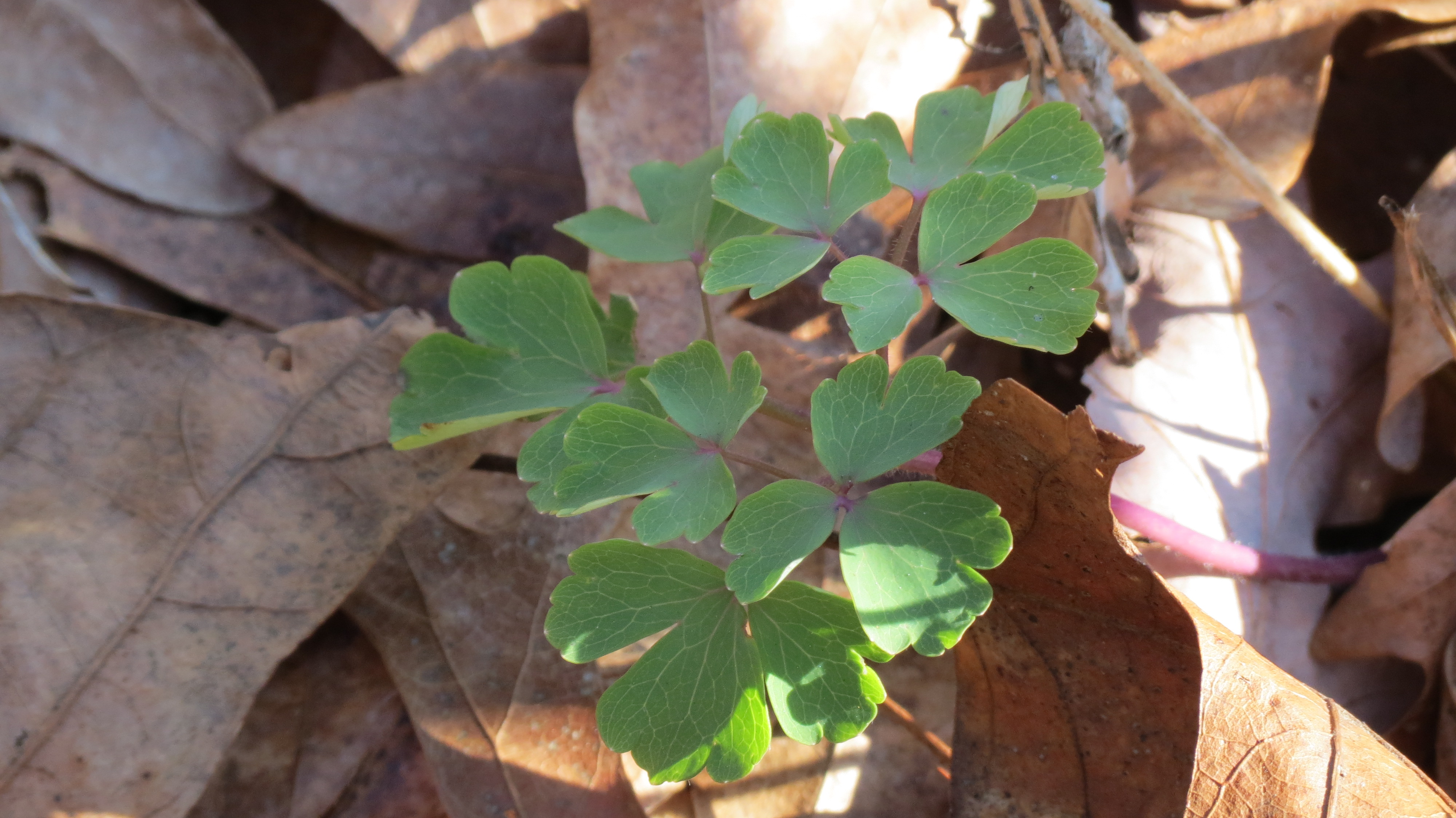 As I walked along the path to the door, there, floating in the mass of brown leaves, was the green of Columbine. I planted the seeds last spring, but the small plants never bloomed. They are, though, still alive, and I have very high hopes that they will flower this spring.
