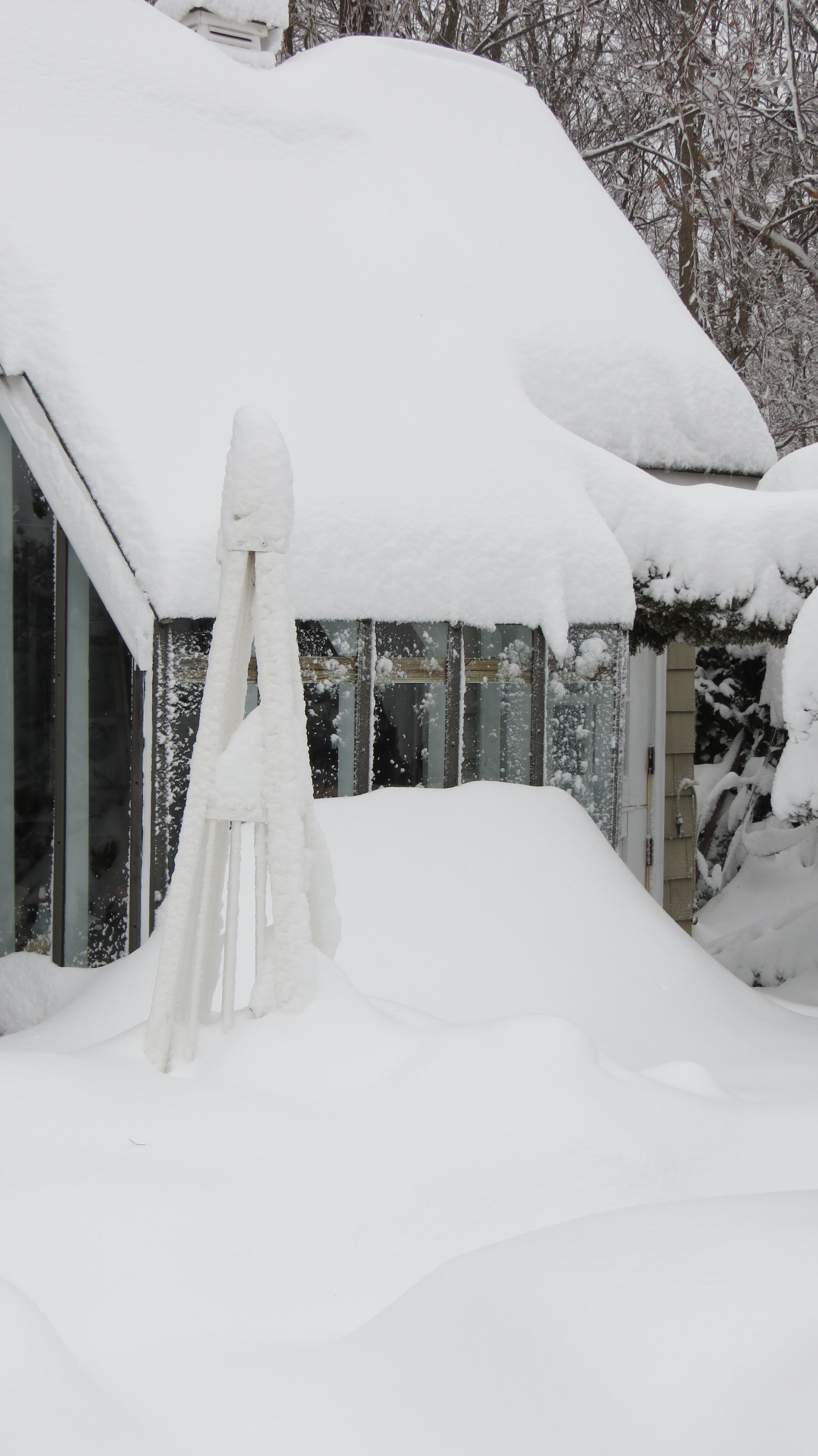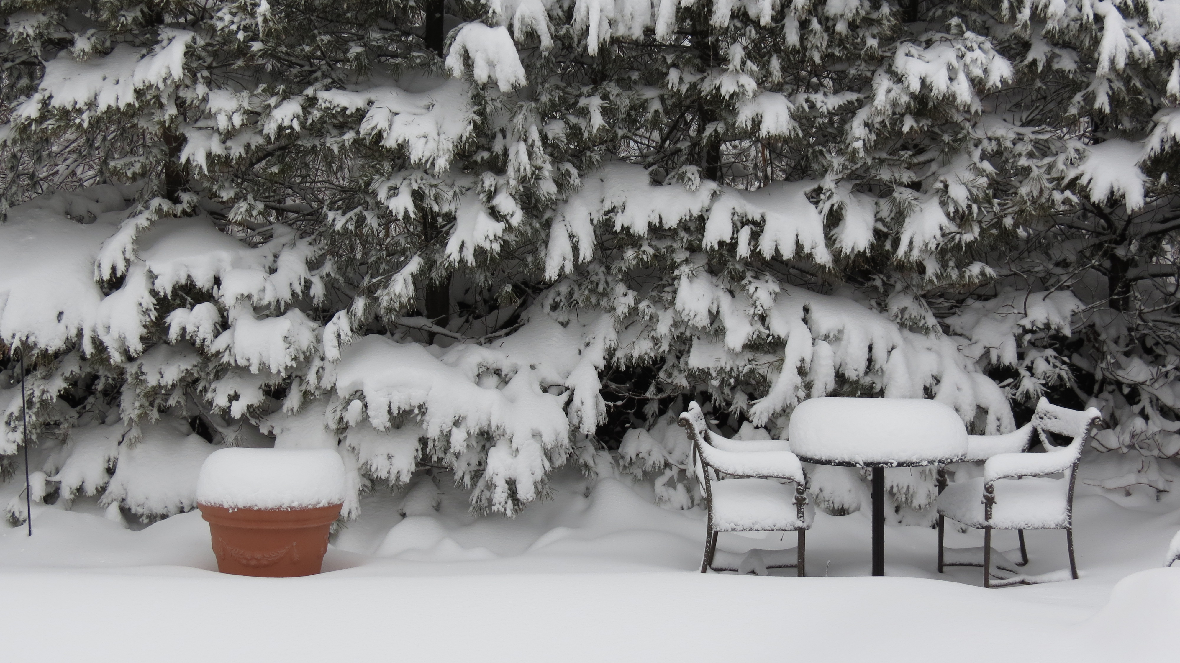 You really did get a ton of snow and it looks heavy too. Good idea to knock some of that off the trees and shrubs. We’ve had about half the amount and its very light so there’s no worry about tree limbs breaking (we just can’t see anything cause it won’t stop blowing around)