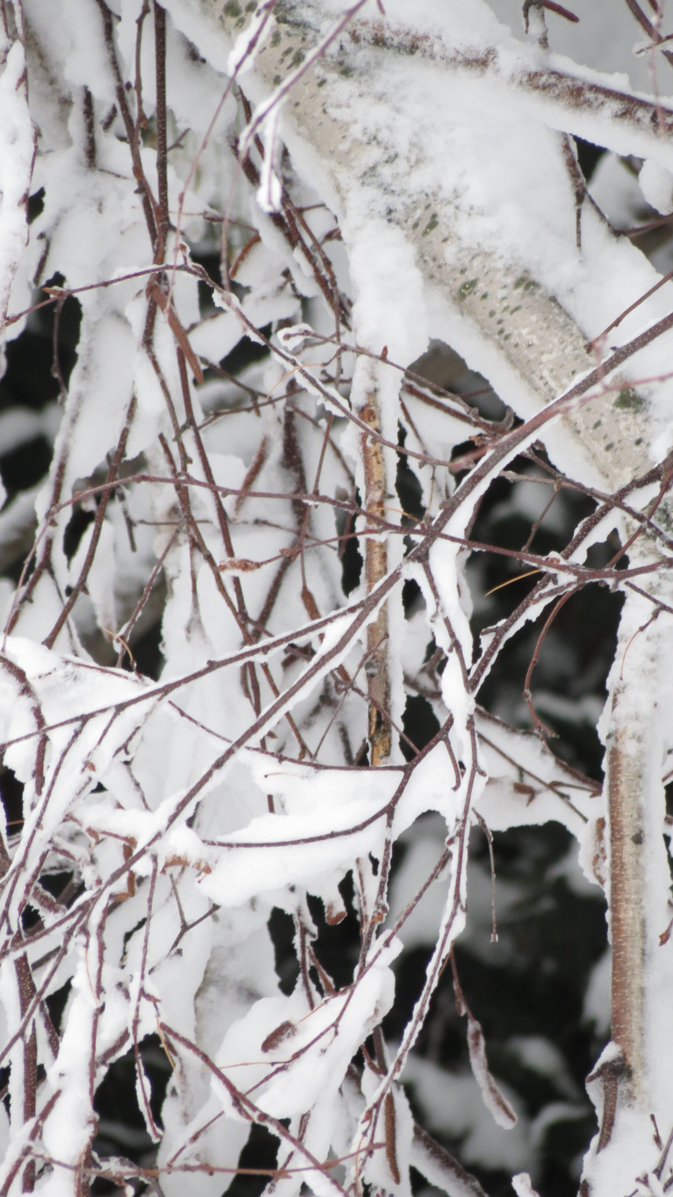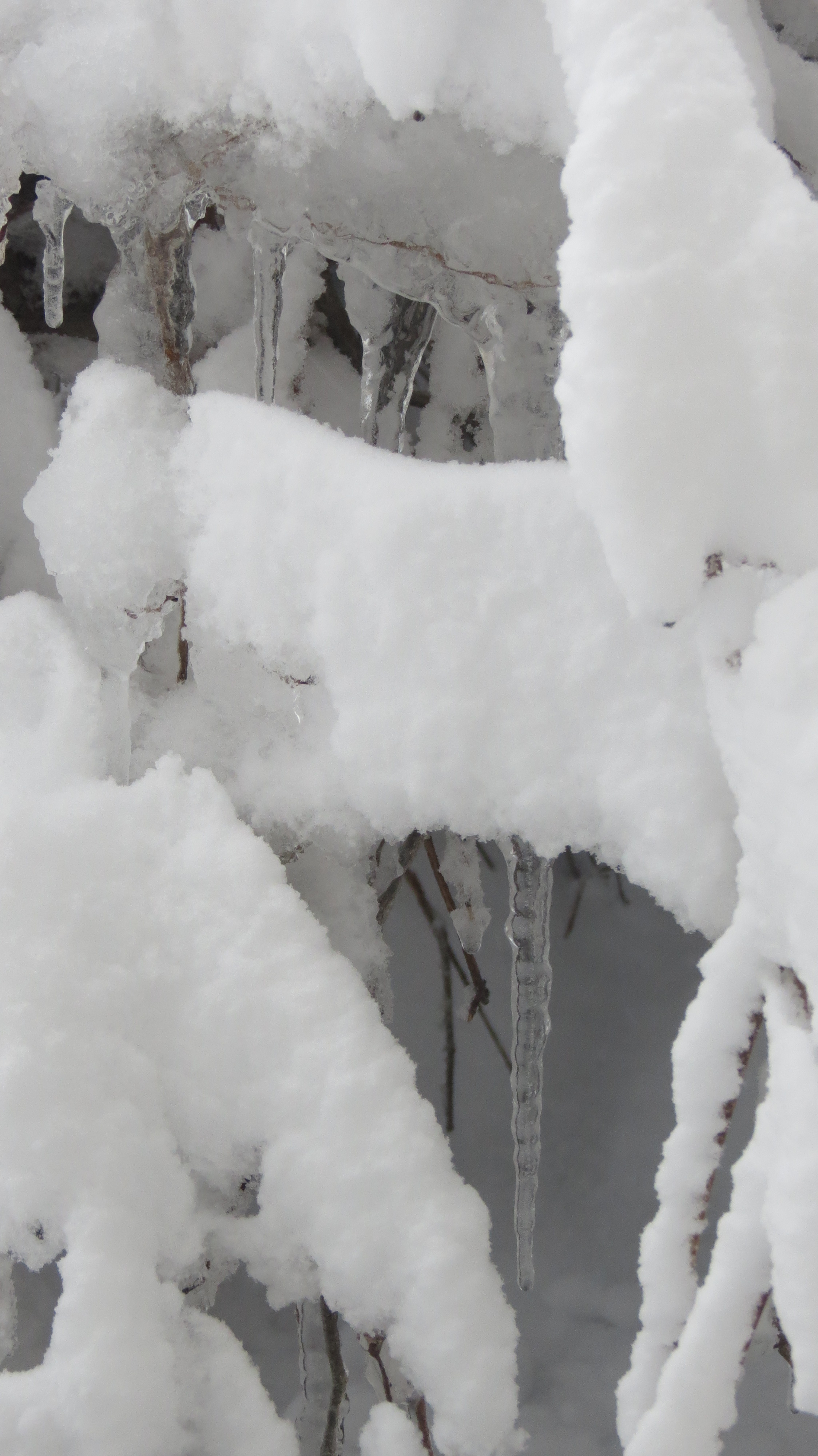 Hi Lona. Snow is one thing — but the weight of this snowfall and the speed at which it fell is overwhelming. I tried to shake off some of the shrubs, but everything on the branches is frozen. I’ll just have to be patient for a thaw.