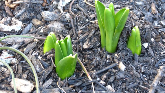 These Hyacinth crowns (above) were not visible prior to getting on the plane. But there they were when we returned. It amazes me that all winter, bulbs are hanging out underground just waiting for some warmth to make their move upward. I can’t wait to smell their flowers.