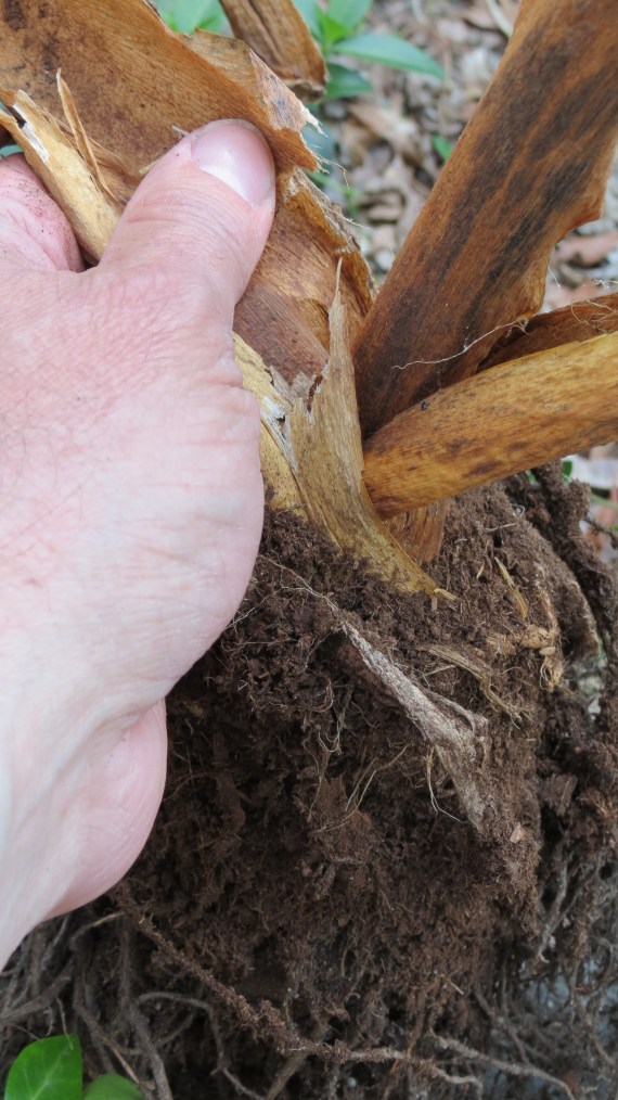 1. After a long winter’s nap, the stems, leaf remnants, and roots have withered from tropical green to paper bag brown.