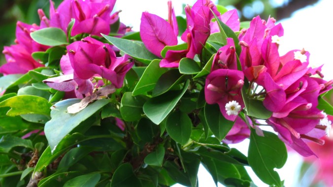 My neighbor’s Bougainvillea, which hangs over the fence for me to enjoy.