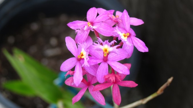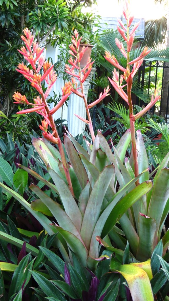 All I did was plant them — three bromeliads, planted close to one another, all blooming at the same time.