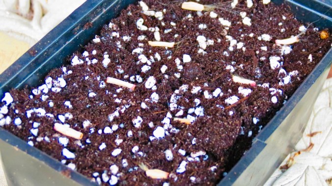 At this point, I treated the seeds as I would any other seed I planted. To begin, I supplemented the medium with more vermiculite to help with drainage. Desert rose is a succulent and too much water can kill a plant. I then covered the seeds with a light layer of soil.
