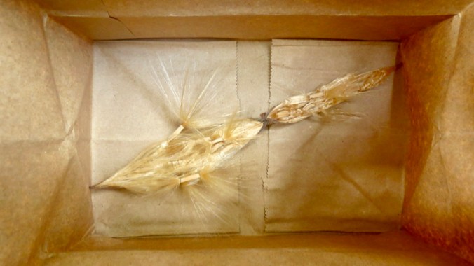 Looking more like a fly-fishing lure, each seed had a hard center with flaxen-colored, silky hairs on the ends to carry it on the wind — and that’s the reason some YouTubers wrap twine around the pod. With the slightest breeze, valuable seeds could sail away.