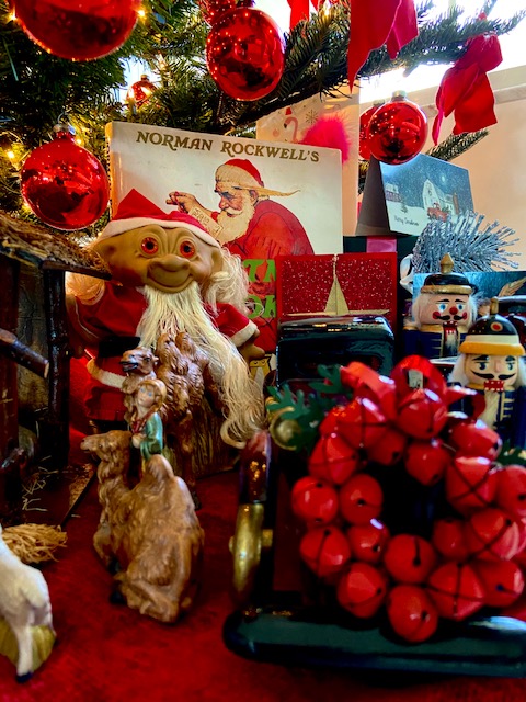 When Joe was a boy living in Coney Island, he and his grandmother walked down the stairs of the final stop on the D-Line. At ground level, there were various shops under the elevated subway, one of which sold Christmas and novelty items. That’s when this Santa Claus (above, to the right of the book) — thanks to Nana — entered Joe’s life. . . and he’s been with Joe (and now us) ever since.