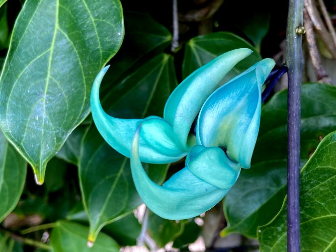 Speaking of myths. . . I’ve only ever seen jade vine in plant catalogs and never in a landscape. It’s like the Big Foot of the South Florida garden world. Then, there it was in Mounts — lush and rambling up and over an arbor, that unmistakeable color on full display.