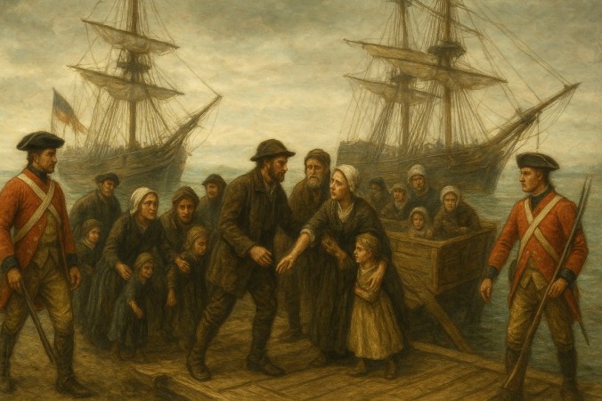 The weather was overcast and gray, wind whipping small drops of rain and sleet, when British soldiers did exactly as the refugees from 1755 had described. The Guillots, Jean-Baptiste and his wife and six children, ranging in age from 12 to less than 1, were pulled from their home, which was then set ablaze, and they were marched to the harbor and placed on one of 15 ships. Fortunately, in this wave, families remained together.