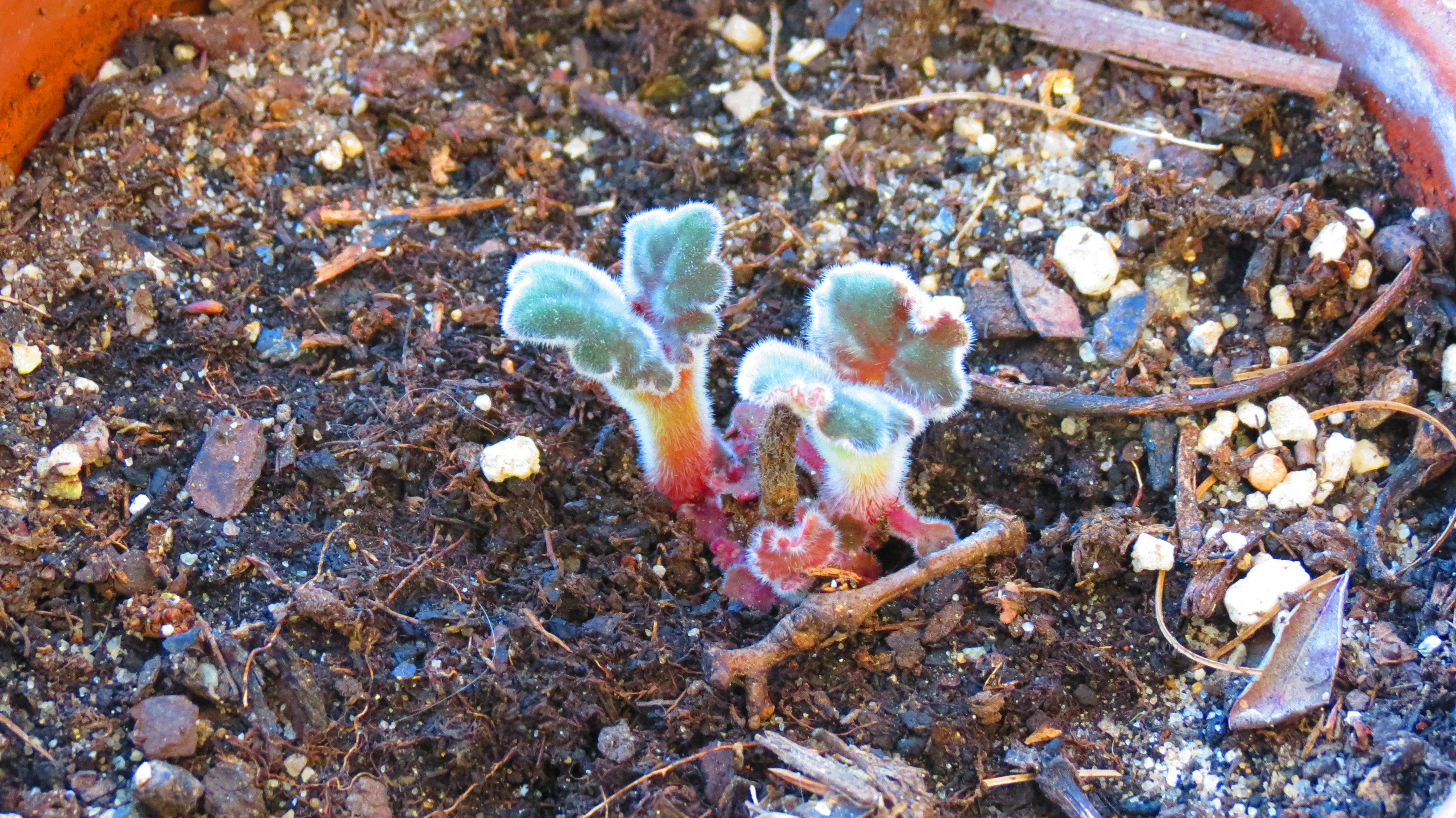 It’s a funny thing, this Gloxinia. At the end of the growing season, after all of the leaves and stems have withered away, I put it in an out of the way place. When I remember, I give it some water – and then, thanks to its inner timepiece, it begins to emerge from its winter dormancy – and I am always in awe. While I go about my life and career, this plant is doing its own thing – dormant and alive, right under my nose, and when I least expect it, Gloxinia reminds me that it’s still here.