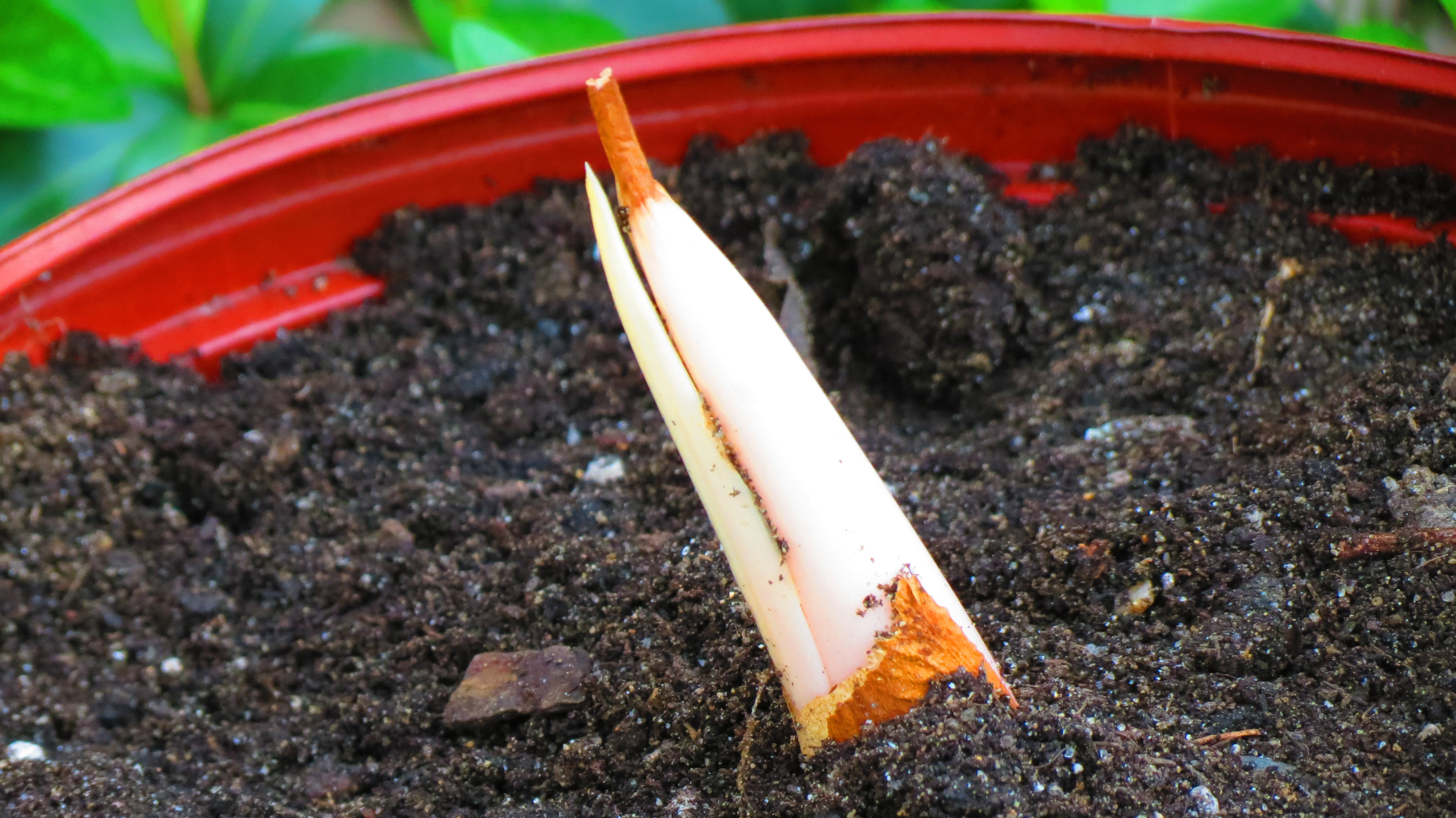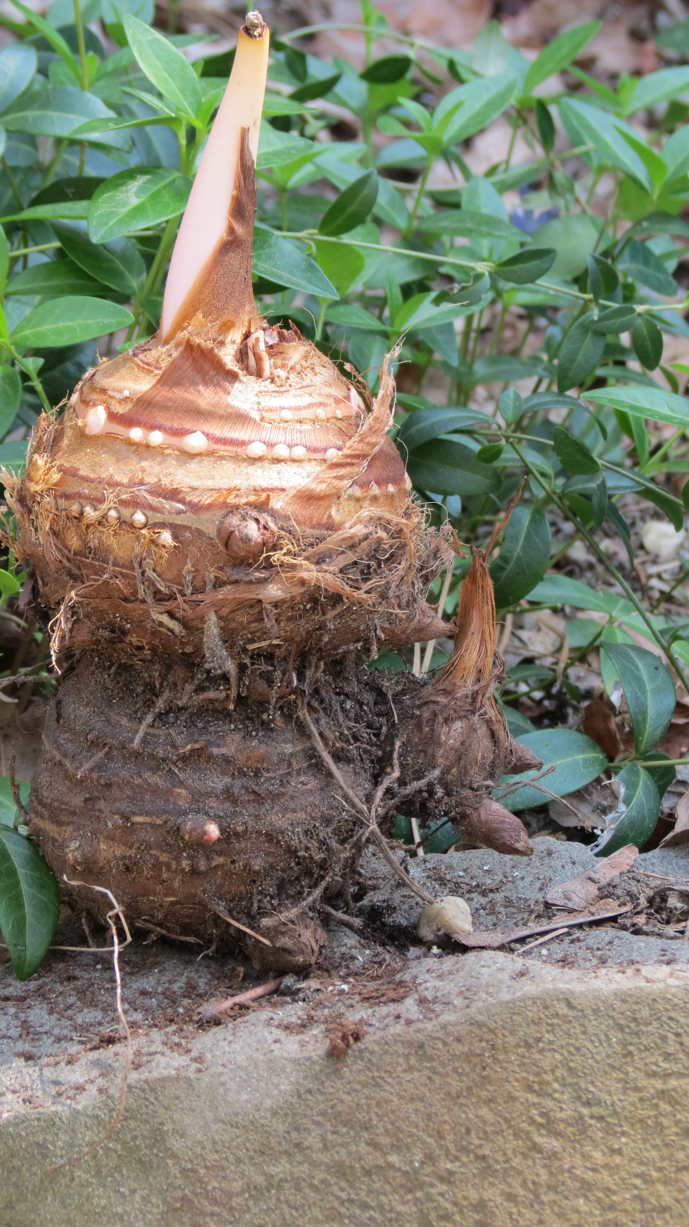 1. After a long winter’s nap, the stems, leaf remnants, and roots have withered from tropical green to paper bag brown.
