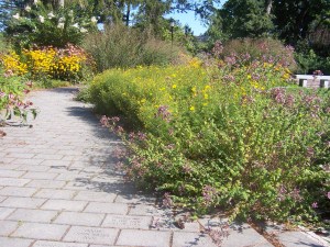Then, all around, are splashes of sweet nectar and color, thanks to butterfly bushes, salvias, cardinal flowers, trumpet vines, honeysuckle, and a selection of tropical flowers to make the hummingbirds feel more at home.