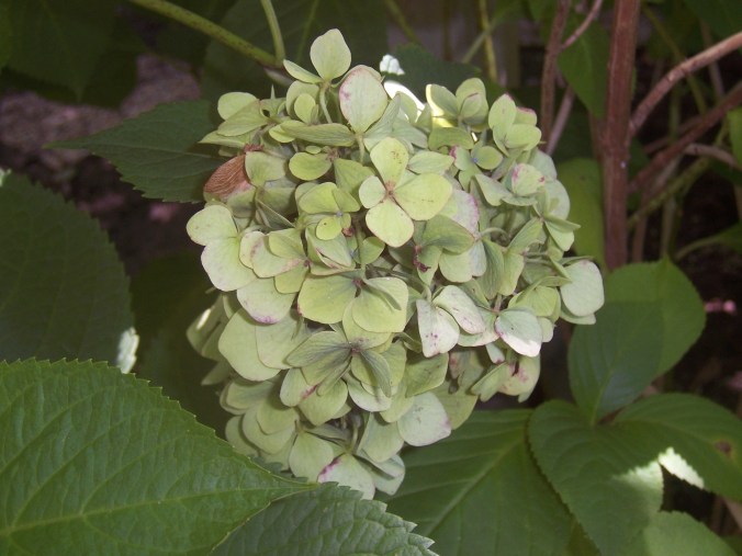 And when I look around the garden, it’s clear that some plants are still sporting nasty sunburns. Some of the hydrangea heads, for example, are tipped with brown.