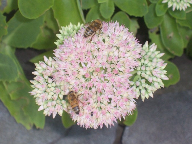 Finally, another glimpse of “Autumn Joy” Sedum. The bees were probably in a state of suspended animation at this hour and temperature.